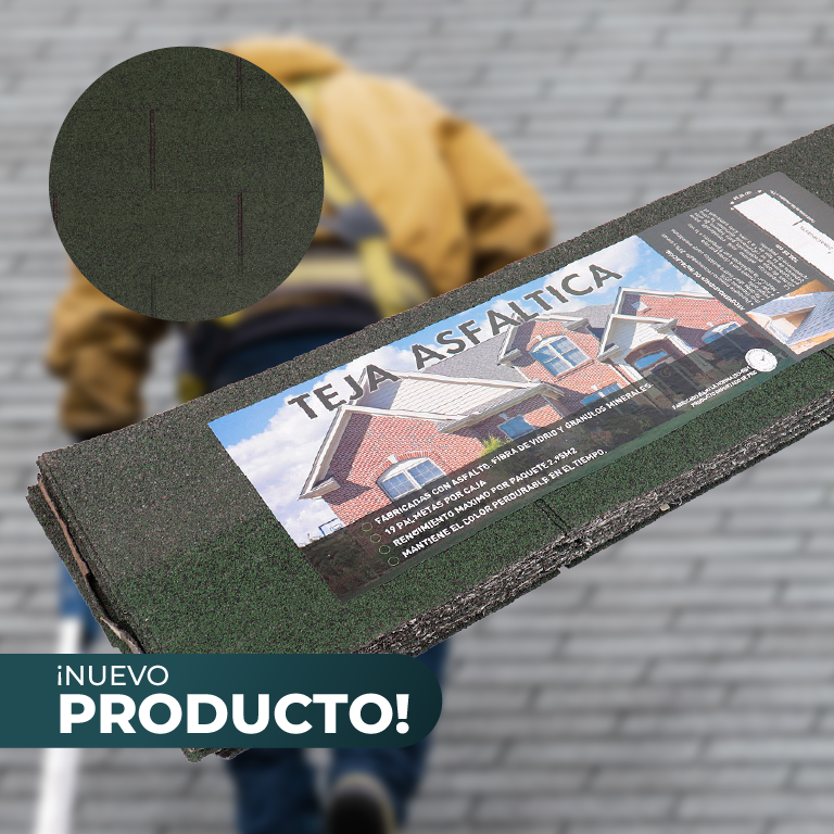 Teja asfáltica fabricada con asfalto, fibra de vidrio y minerales seleccionados que aportan profundidad y textura a la terminación de las tejas.